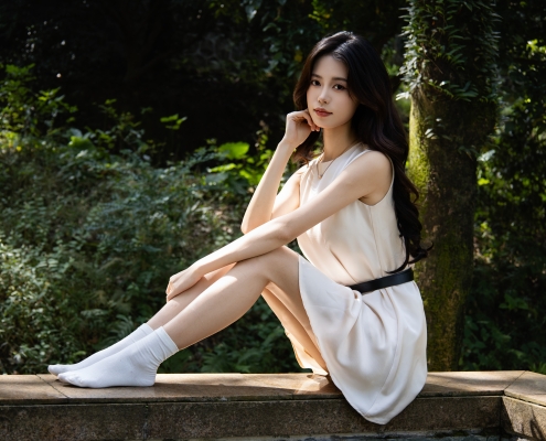 足愉心摄影第86期:模特萌黄(本期会员免费)(搭配:白色连衣裙、白色板鞋、白色棉袜、裸足)