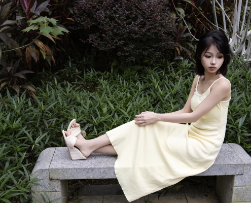 足愉心摄影第82期:模特夏沫(搭配:白色连衣裙、白色板鞋、白色棉袜、裸足)