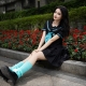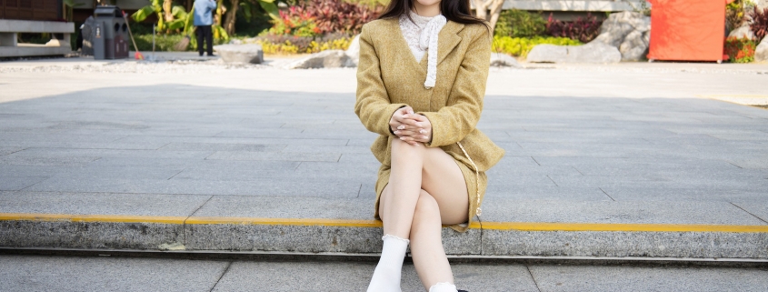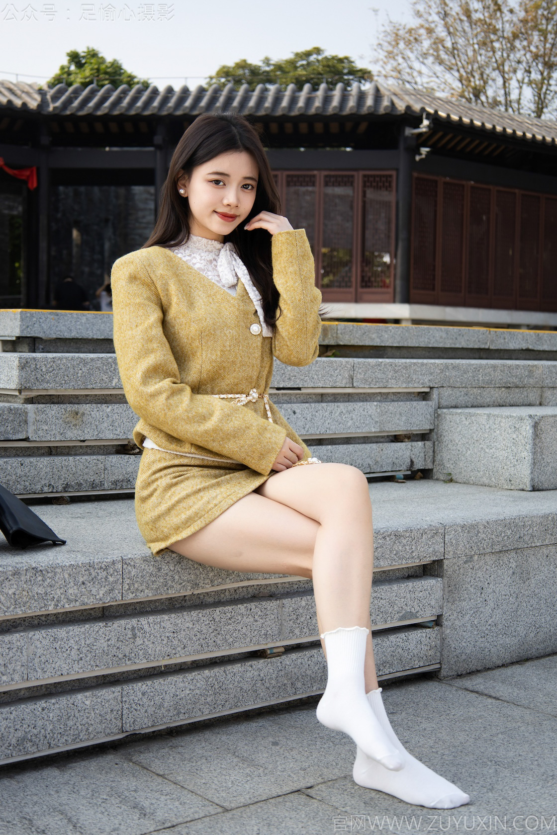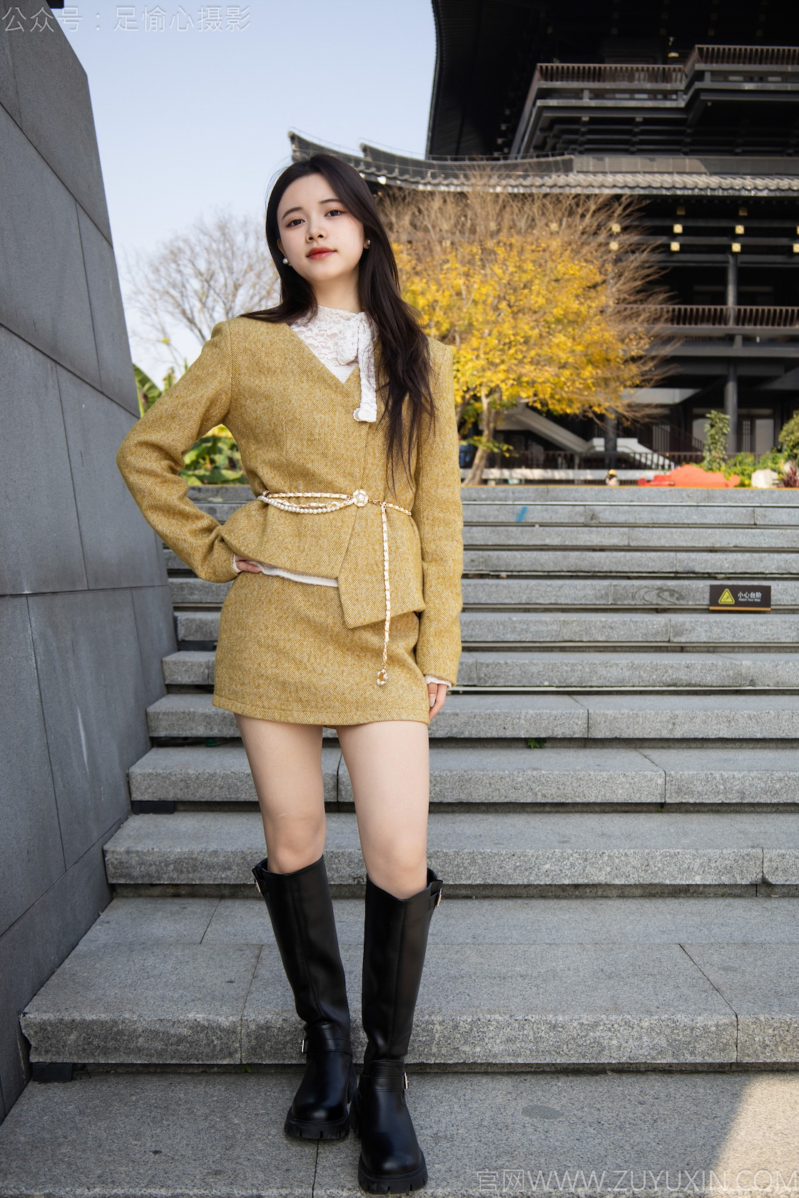 搭配内容:黄色连衣裙,黑色长靴、白色棉袜、裸足