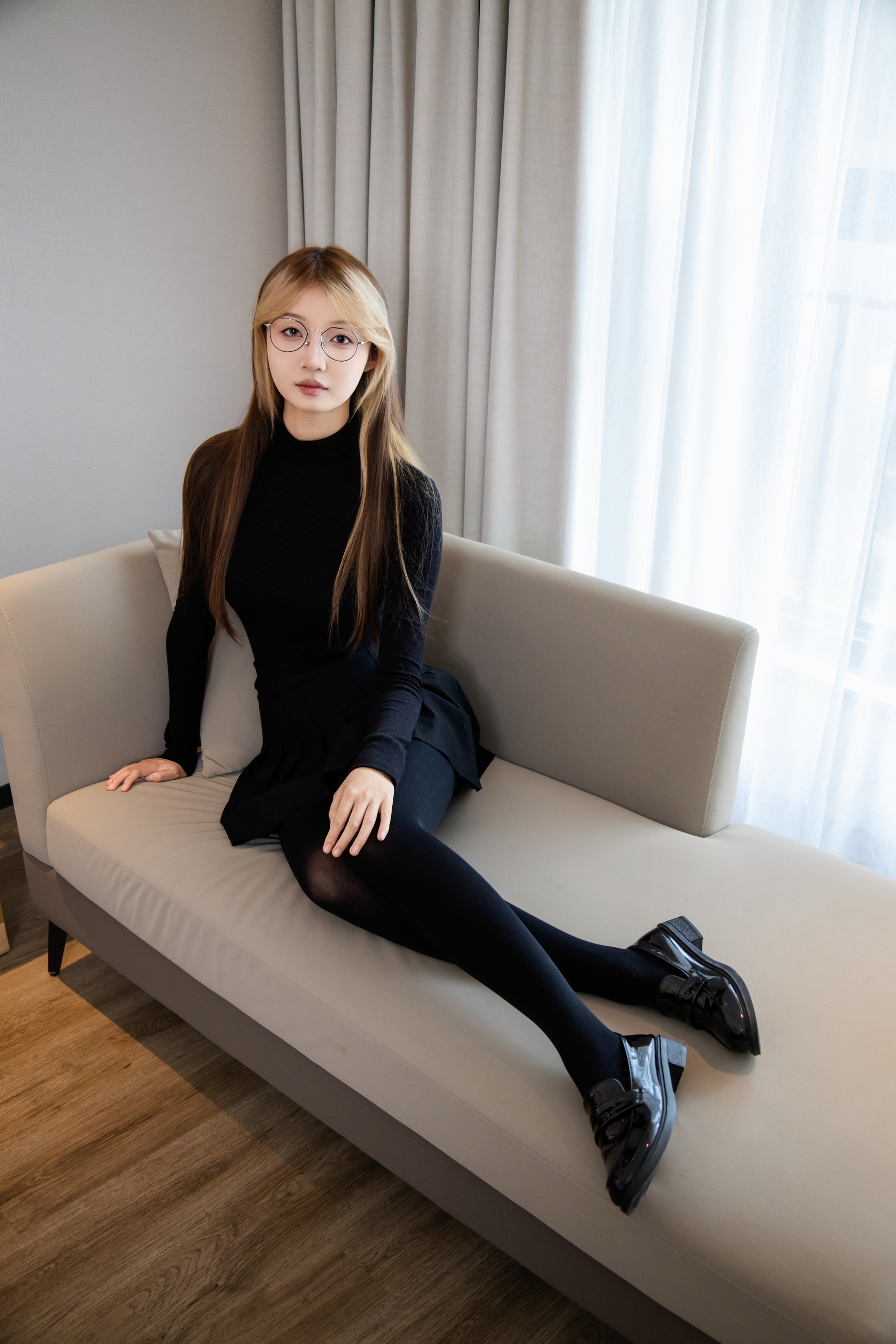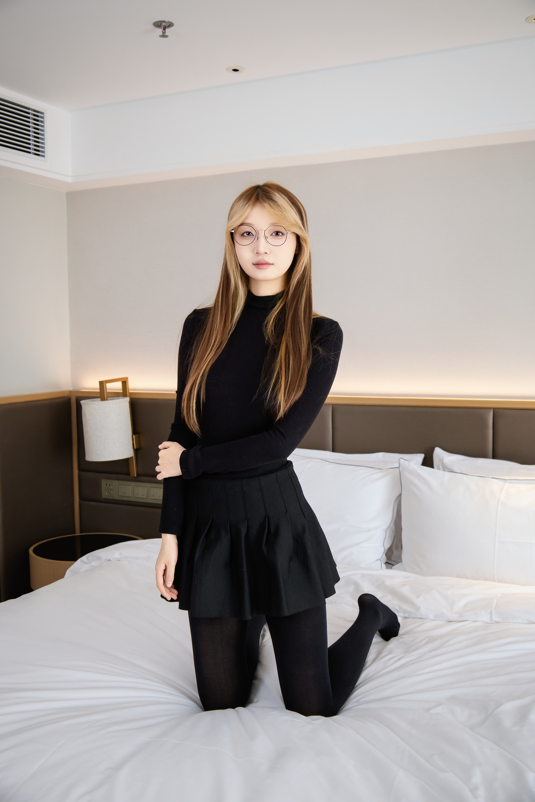搭配内容:黑色紧身衣、黑色短裙、黑色丝袜、小皮鞋