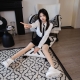 搭配内容:黄色短T、牛仔短裤、肉色丝袜、裸色高跟鞋