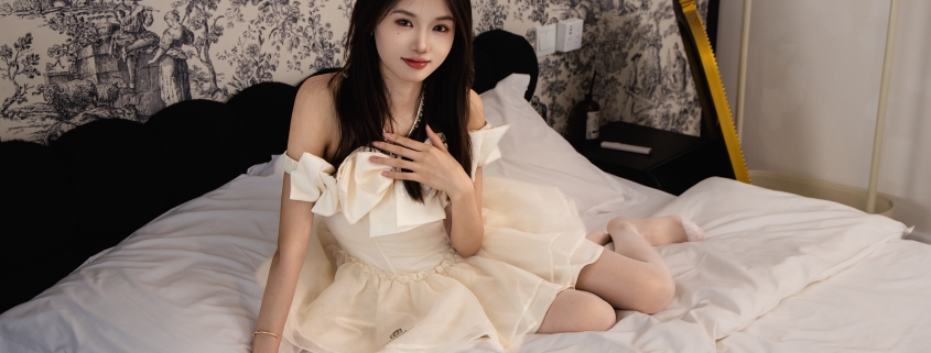 搭配内容:白色连衣裙、高跟鞋、白色丝袜