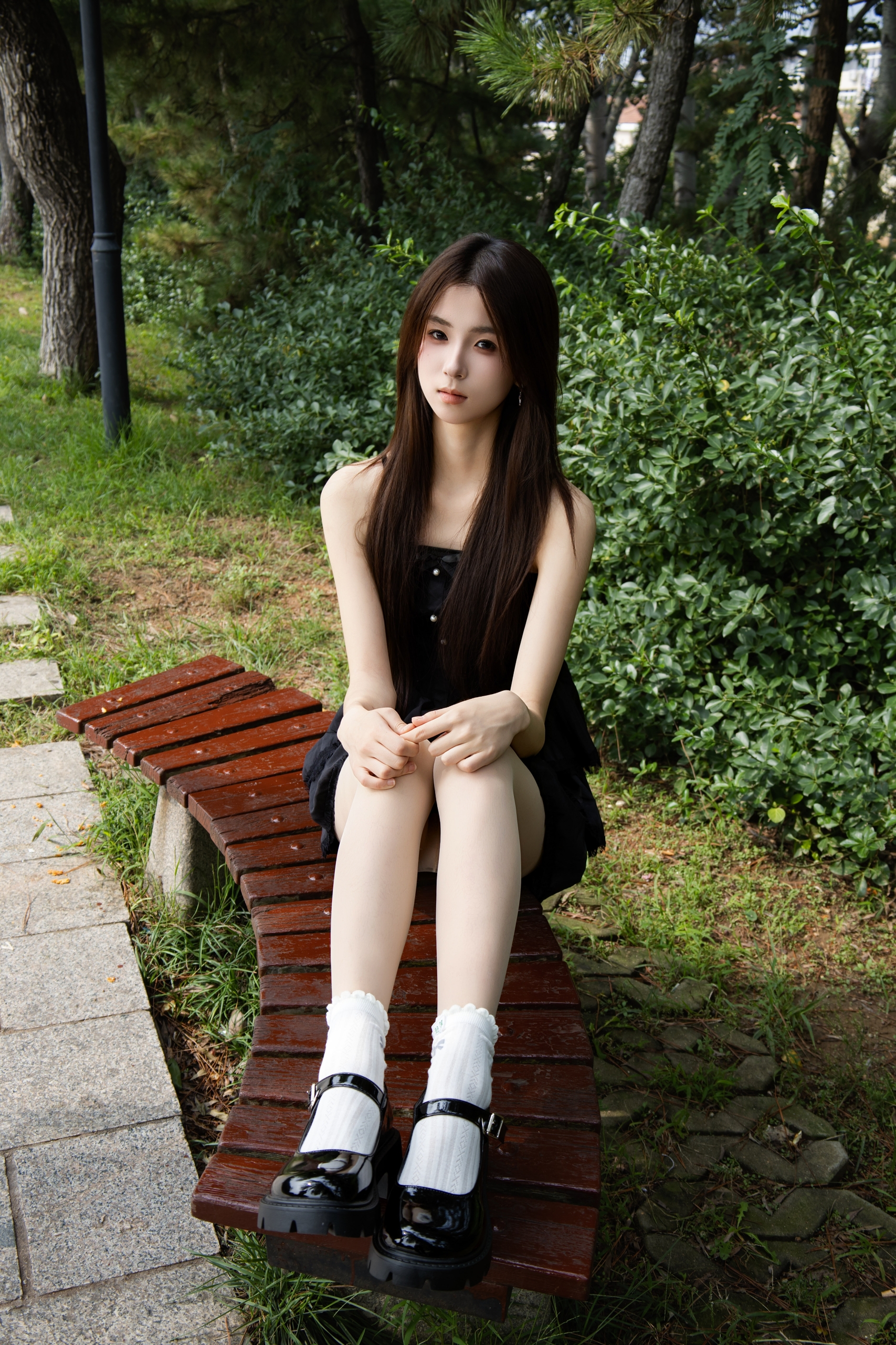 搭配内容:黑色连衣裙、肉色丝袜、白色棉袜、玛丽珍小皮鞋