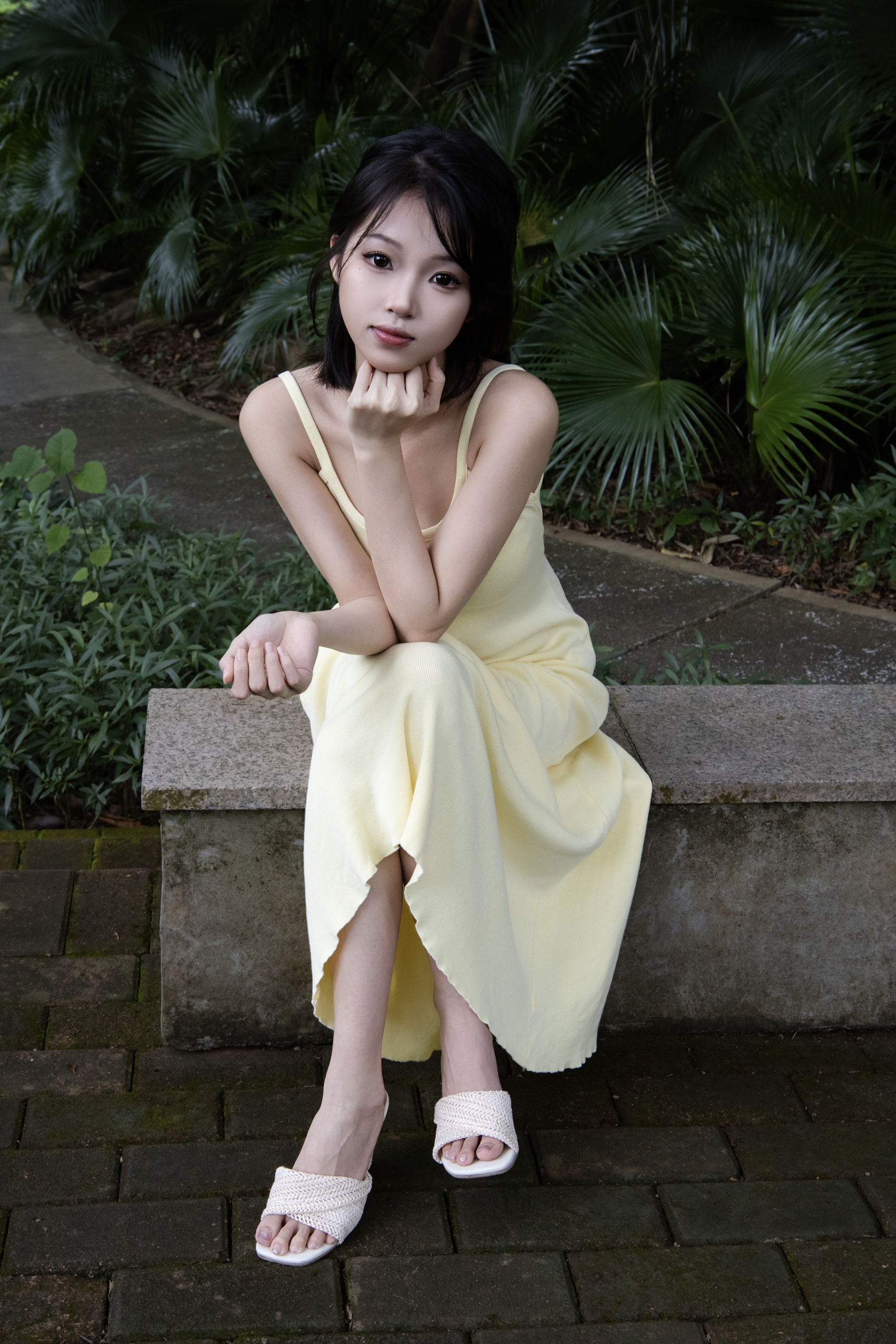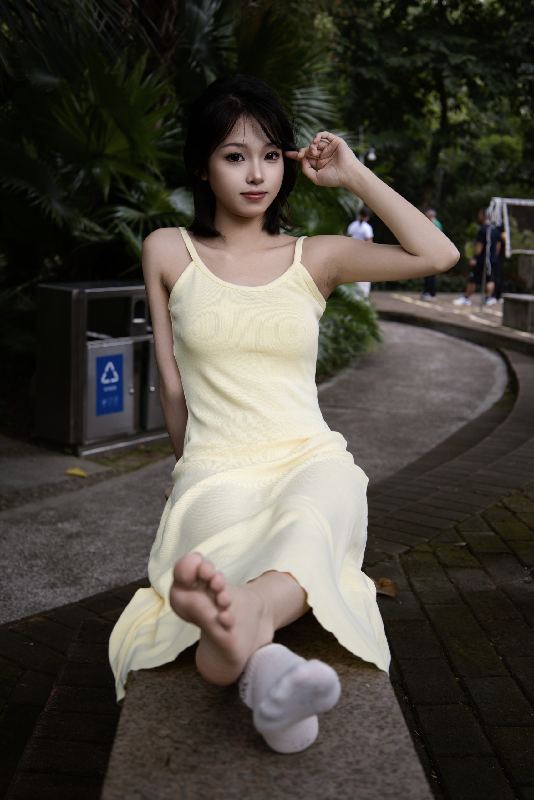 搭配内容:白色连衣裙、白色板鞋、白色棉袜、裸足