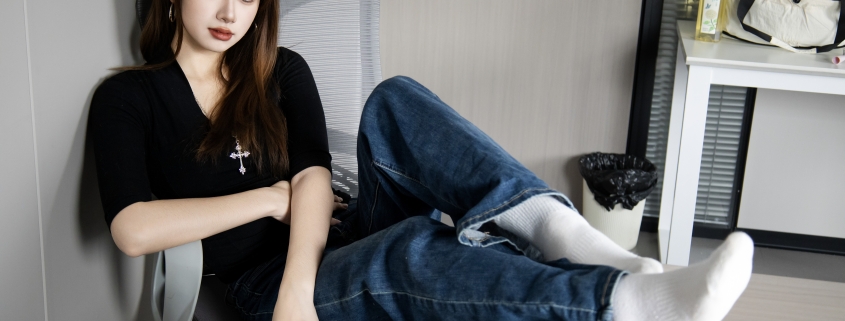 搭配内容:帆布鞋、黑棉袜、裸足